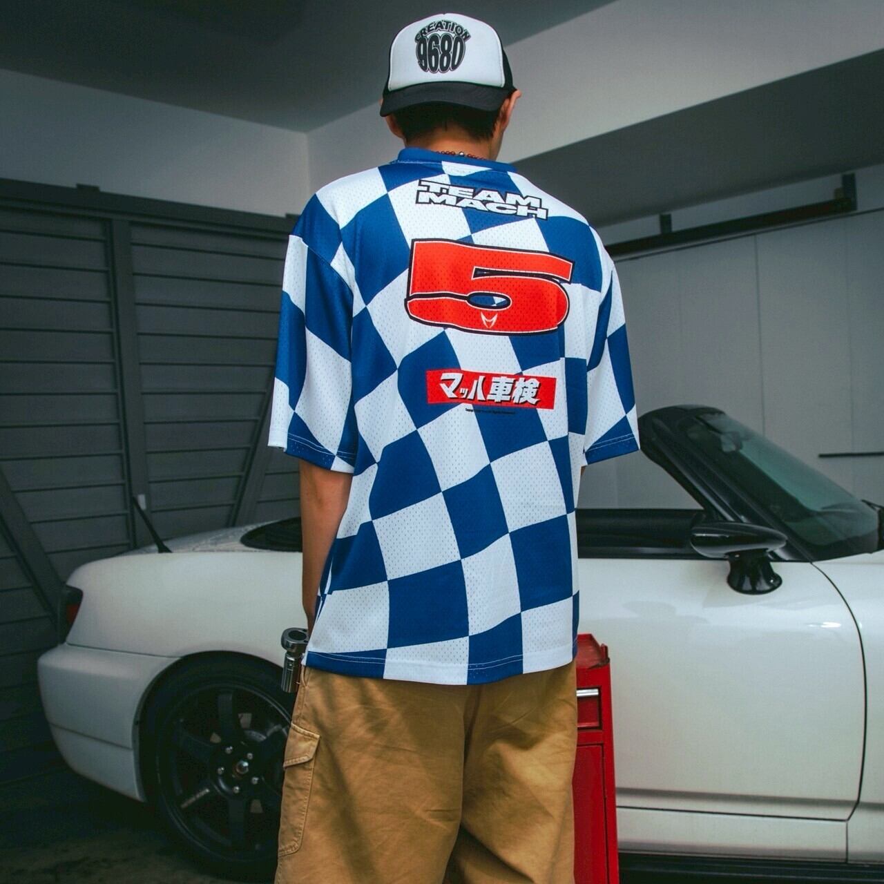 様々なチームのTシャツグッズがある中で、チームマッハを応援しているとしっかりアピールができるデザインでありながら、ヨーロッパのレースチームグッズのようにファッションアイテムとしても着こなせるようにMC86のリアウイングのチェッカー柄をベースに、Tシャツボディの型からデザインまで、すべてオリジナルで制作しこだわり抜いたグッズになっています。